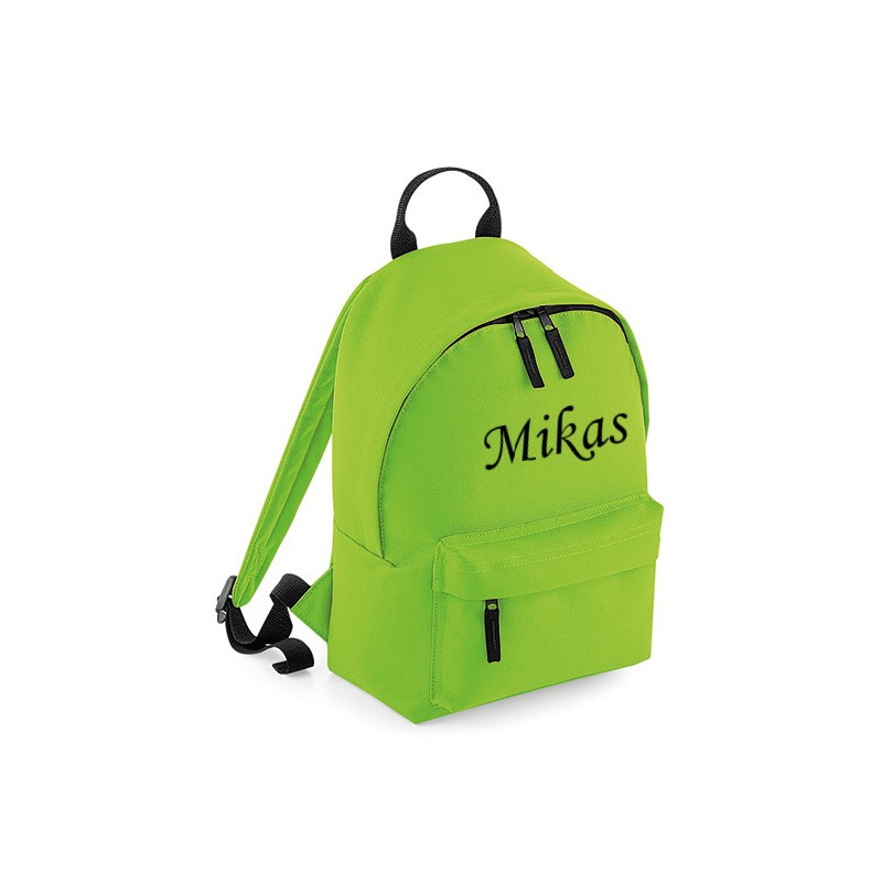 Navn broderes foran på den lille taske. Hvis du ønsker både navn og efternavn kan du vælge 2 linjer tekst i menuen. Der kan broders et lille motiv på forlommen. Det er også muligt at vælge brystspænde på tasken. Det er et klikspænde som barnet selv kan åbne og lukke foran. Spændet kan justeres op og ned ad skulderstopperne og ind/ud i bredden, så det kan tilpasses induviduelt efter barnets ønske.