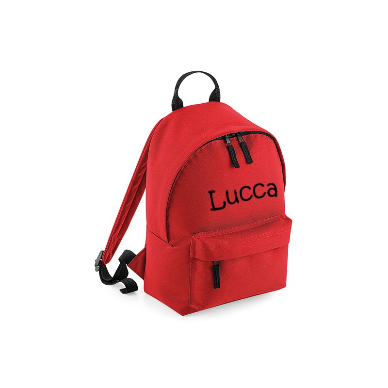 Lille rød rygsæk er i god kraftig kvalitet der tåler håndvask. Rygsækken måler 33 x 24 x 17 cm. Der er hank i toppen af rygsækken.