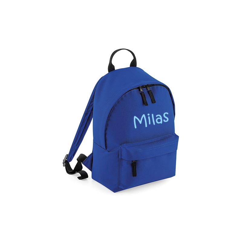 Navn broderes på forsiden, så tasken bliver personlig og nem at kende. Ønsker du både fornavn og efternavn, kan du vælge brodering i to linjer. På forlommen kan der også broderes et lille motiv, hvis tasken skal være ekstra personlig. Du kan desuden vælge brystspænde, som kan justeres op og ned på stropperne og i bredden, så det sidder godt og hjælper barnet med at holde tasken på plads.